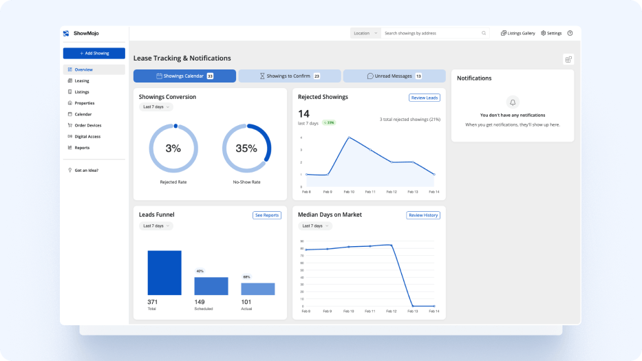 Get instant visibility into inquiries, showings, and trends, so you can make data-driven recommendations to owners, communicate progress, and keep them in the loop.